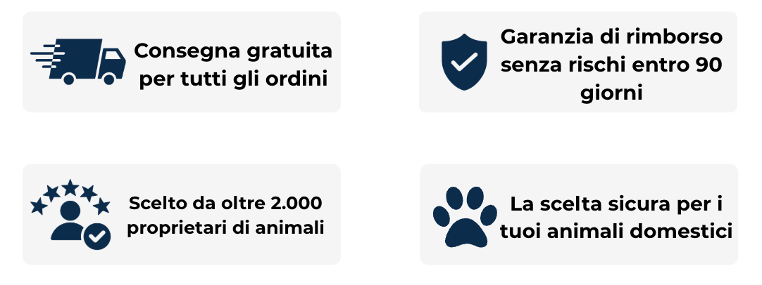Perché 90 giorni? Perché sappiamo che occorrono dalle 4 alle 6 settimane per interrompere completamente il ciclo vitale delle pulci. Ti concediamo 90 giorni affinché tu possa vedere i risultati completi e avere ancora tempo per decidere.