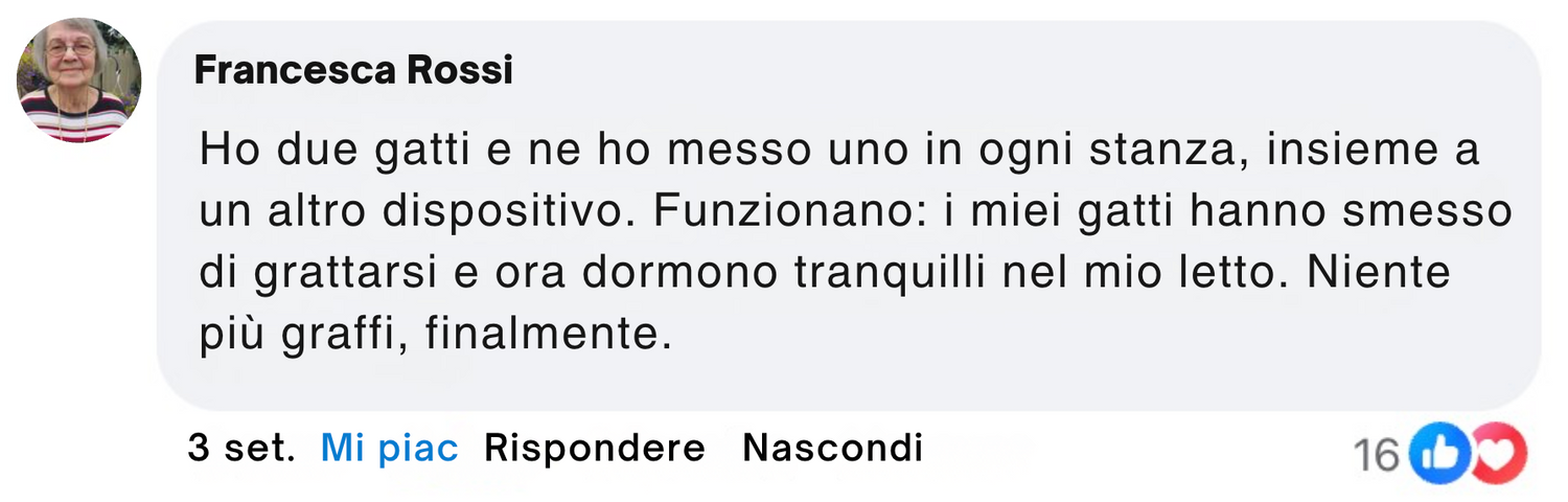 Ho provato tantissimi prodotti contro le pulci, ma nessuno funzionava davvero. La mia gatta Bella si grattava continuamente e odiavo applicarle prodotti chimici. Ho collegato Pestgo e ho sperato che funzionasse. Dopo pochi giorni, niente più grattate né pulci. Onestamente... Wow! Ne ho appena ordinato un altro.
